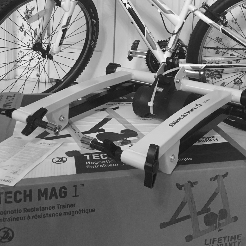 I had already figured out that there are four types of bike trainers — roller, wind, fluid, and magnetic resistance — and that the low-end ($100) magnetic resistance one would most likely meet my current needs (product testing, exercise on days when I can’t get out of too-dangerous-to-ride suburbia, potential use in classes to teach an intro to gearing, and for demonstrating riding options for those with certain mobility issues).