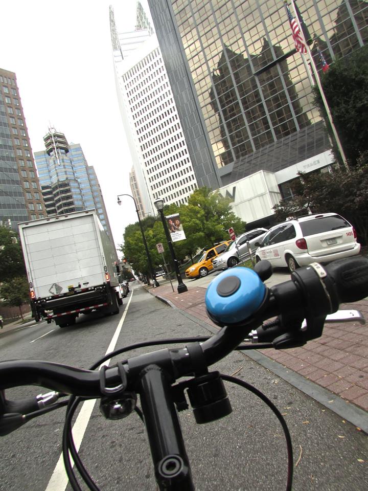 In addition to already-planned classes in the metro-Atlanta cities of Dunwoody, Norcross, and Decatur, I am also in discussions about offering a free basic bike skills class for women with two mixed-use developments right in the heart of Midtown Atlanta—Atlantic Station and Colony Square (pictured while Traveling at the Speed of Bike).