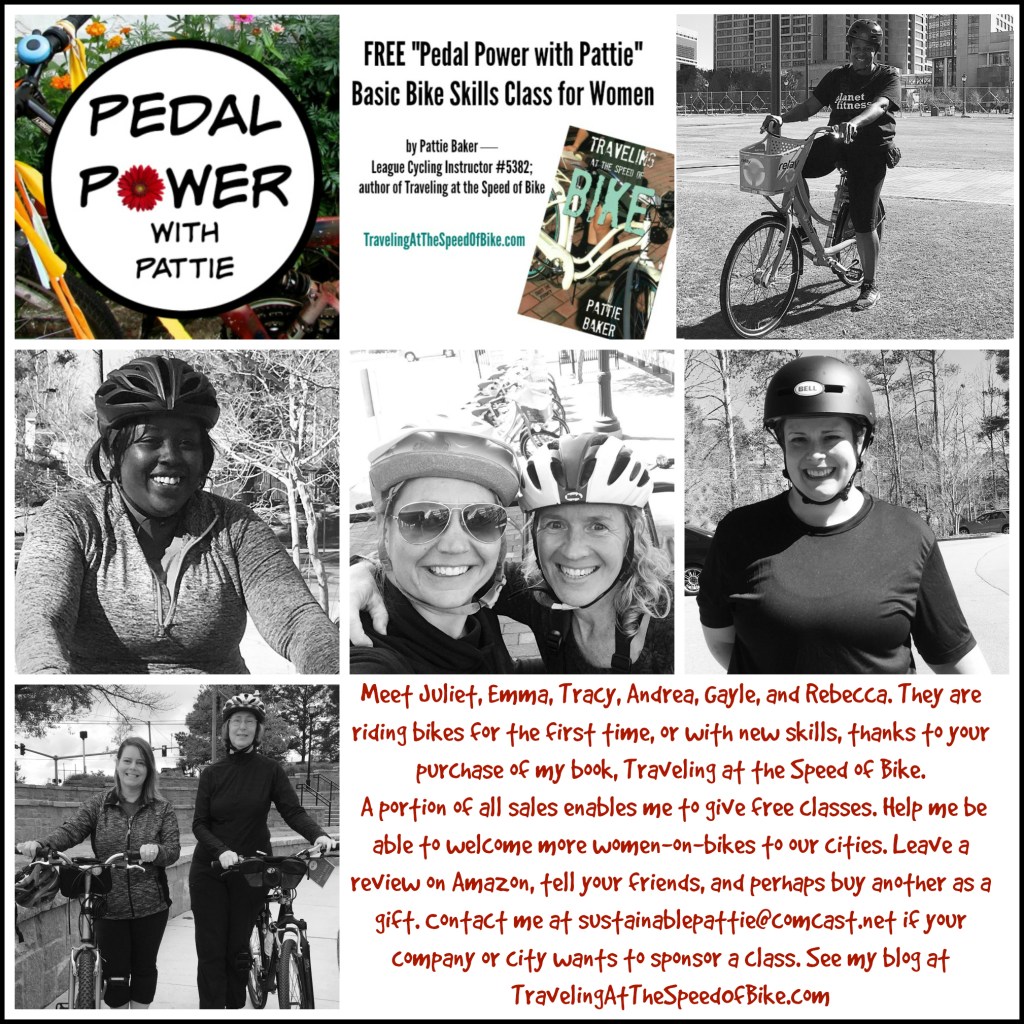 Uncategorized by Pattie Baker23 Apr 20188:32 am One woman-on-bike at a time Click here for link to book. Click here for link to classes. Discover more from Traveling at the Speed of Bike Subscribe to get the latest posts sent to your email. Type your email… Subscribe Share this: Click to share on X (Opens in new window) X Click to share on Facebook (Opens in new window) Facebook Like Loading... Related