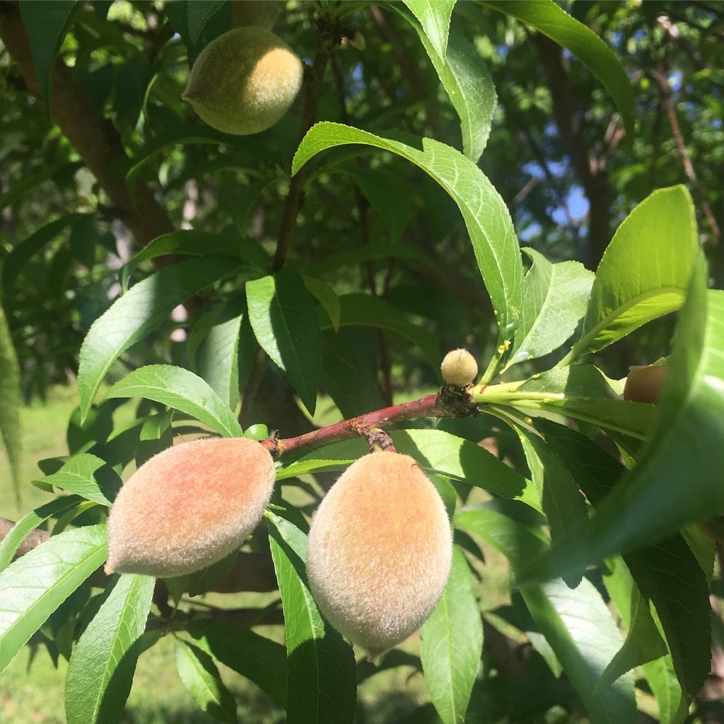 IMG_2849-1.JPGMy friend Rod’s public peach trees have blushing fruit on them. I saw them when I was at the park today while Traveling at the Speed of Bike. They stand on the edge of a field that the city is planning on turning into an “open play field.”