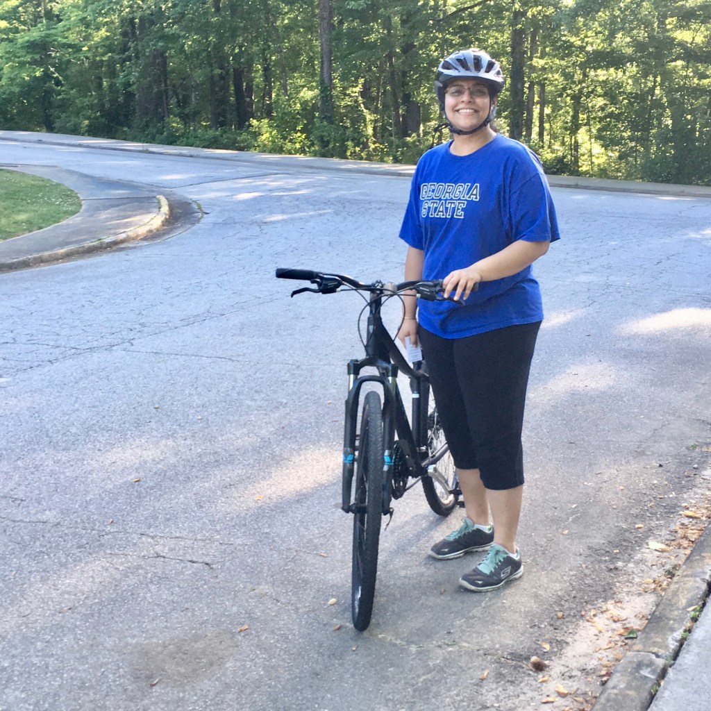 Meet Mansi. She was teaching herself to ride a bike when I came flying around a corner on a trail in my local public park as part of what turned out to be a 21-mile ride for me (during which I didn’t see one other woman on bike).