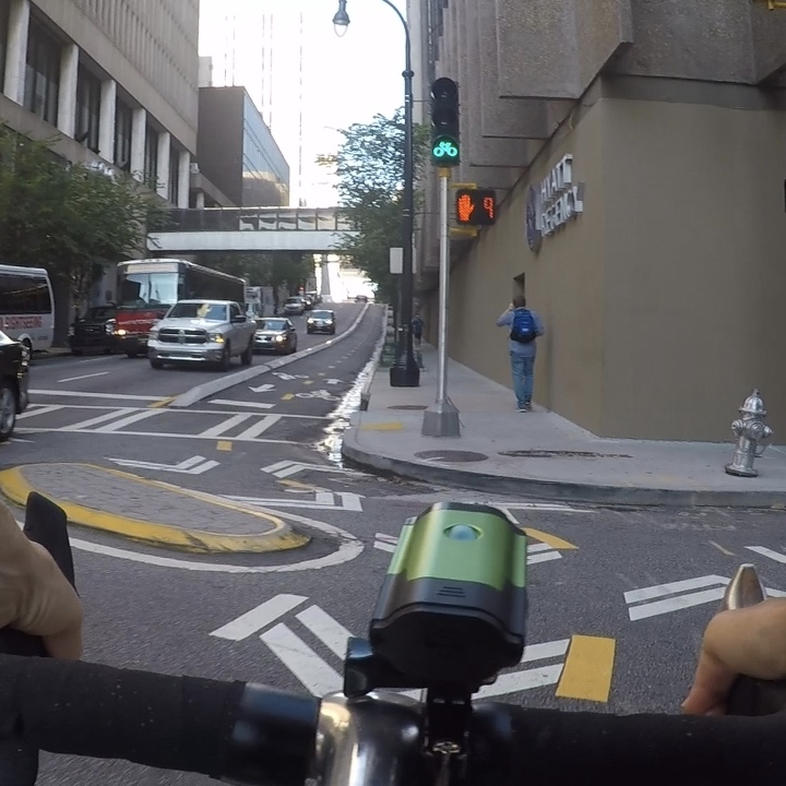 Right about here, where two protected bike lanes (also called cycle tracks) cross in Downtown Atlanta, I crossed my 1,000th mile on bike in 2018 (my goal is to ride a ton of miles — 2,500 — this year).