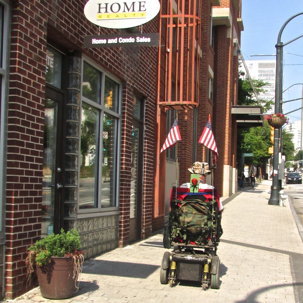 26777212894_b0700945a6_o.jpgMeet a United States military veteran who goes by the name John Plantaseed. He is disabled and travels around Atlanta in a wheelchair. I apparently crossed paths with him two years ago because I have this picture of him in my A Streetcar Named Aspire photo essay album (which now has 1,232 photos, by the way). We’ve crossed paths again on Twitter because he is adamantly opposed to the scooters continually blocking sidewalks all over Atlanta and he keeps tagging me in his posts. You can see what he’s dealing with in one of his many videos here.