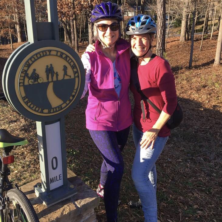 I put it out there on Facebook — an invitation for anyone to join me on Sundays in January for a completely-separated-from-motor-vehicle four-mile bike ride through the three connected parks in the metro Atlanta suburb city where I live. A woman named Kathy Manos Penn showed up two weeks in a row. She is a friend of mine because we both had books for sale at Lemonade Days (here is hers; here is mine). She also writes for the local newspaper.