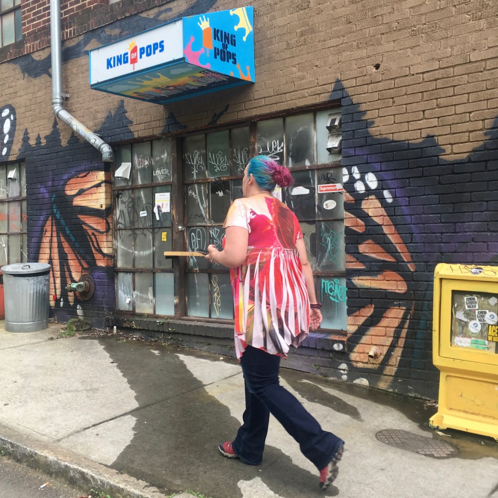 King of Pops seems closed (maybe they moved elsewhere), but this passing lady seemed so popsicle-y. These are things you notice while Traveling at the Speed of Bike.