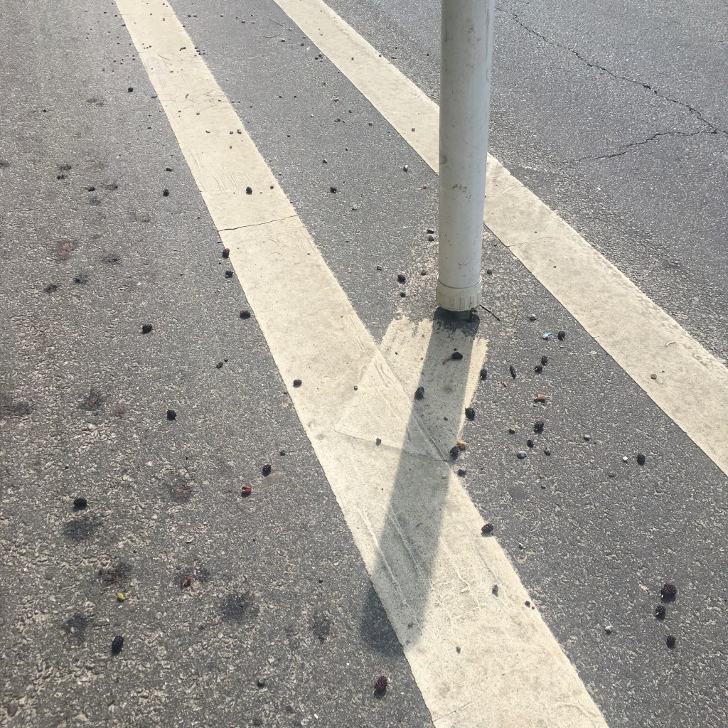 Psssst. It has started. The mulberries are falling. Next up: serviceberries, blueberries, blackberries, pears, plums. apples, peaches, apples, figs, muscadines/scuppernongs, native persimmons, and pomegranates. And it’s ALL FREE , and you get to meet nice strangers when you harvest while traveling at the speed of bike (there’s a whole section about it in my book).