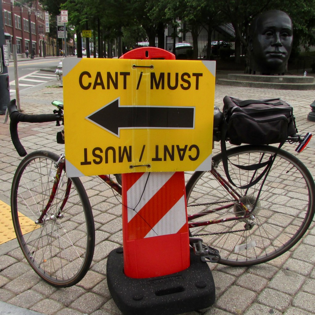 When you feel like you can’t, but know that you must, just follow the signs and keep going. (Or at least that’s what I got out of this movie crew sign I passed today.)