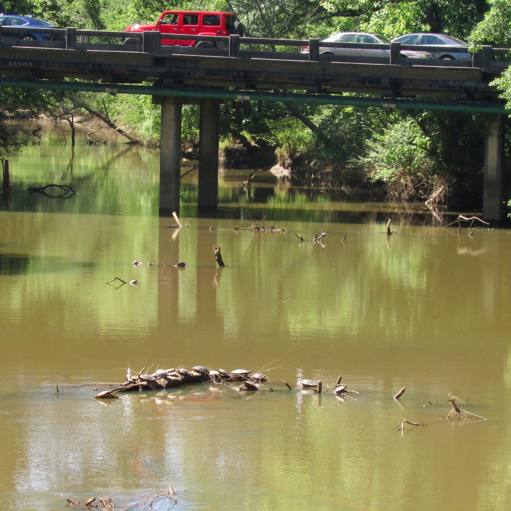 So much bad is happening in the news, and I needed a few hours in prayer. My church is nature, and so I headed to the river, where I stopped mid-bridge while Traveling at the Speed of Bike on a path often flooded lately (but not today) to watch a bunch of turtles sunning on a stick, basking in the beauty of this day.