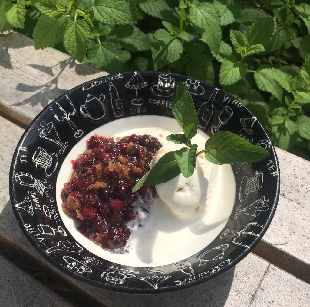 You know those serviceberries I’ve been picking? They worked their way into a cobbler so I could freeze and share them with my daughters when they are here in July. If interested, see my book, Traveling at the Speed of Bike, for a whole section about free public fruit.