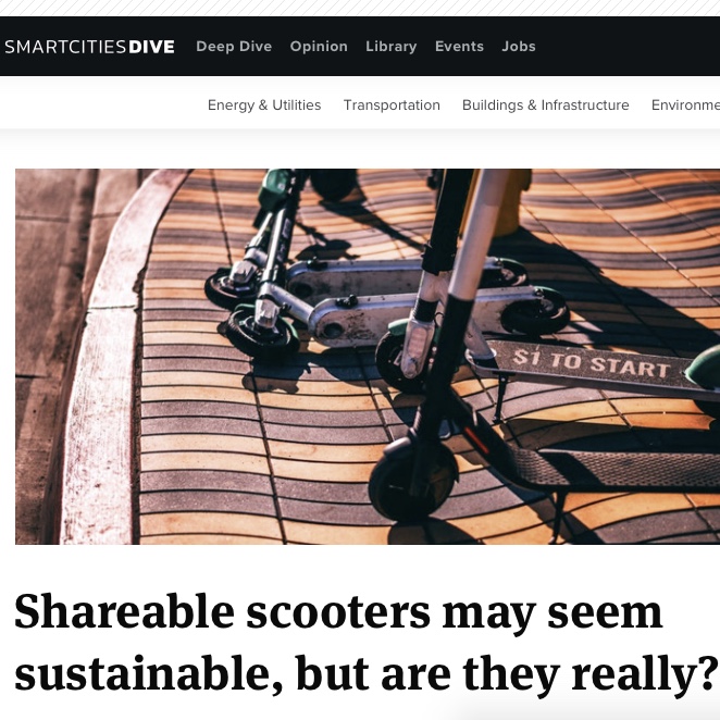 Oh, cool! My scooter article for Ensia was republished on SmartCitiesDive.com. Dive in (or get there while scooting or Traveling at the Speed of Bike).