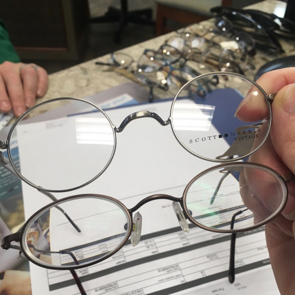 So I’m continuing to bounce from one doctor to another, including to undergo a scary oral allergy test to see if penicillin kills me after more than 50 years of thinking I am allergic to it (spoiler alert — it didn’t), when I pop back into my eye doctor’s office to check out the frames they special-ordered for me.