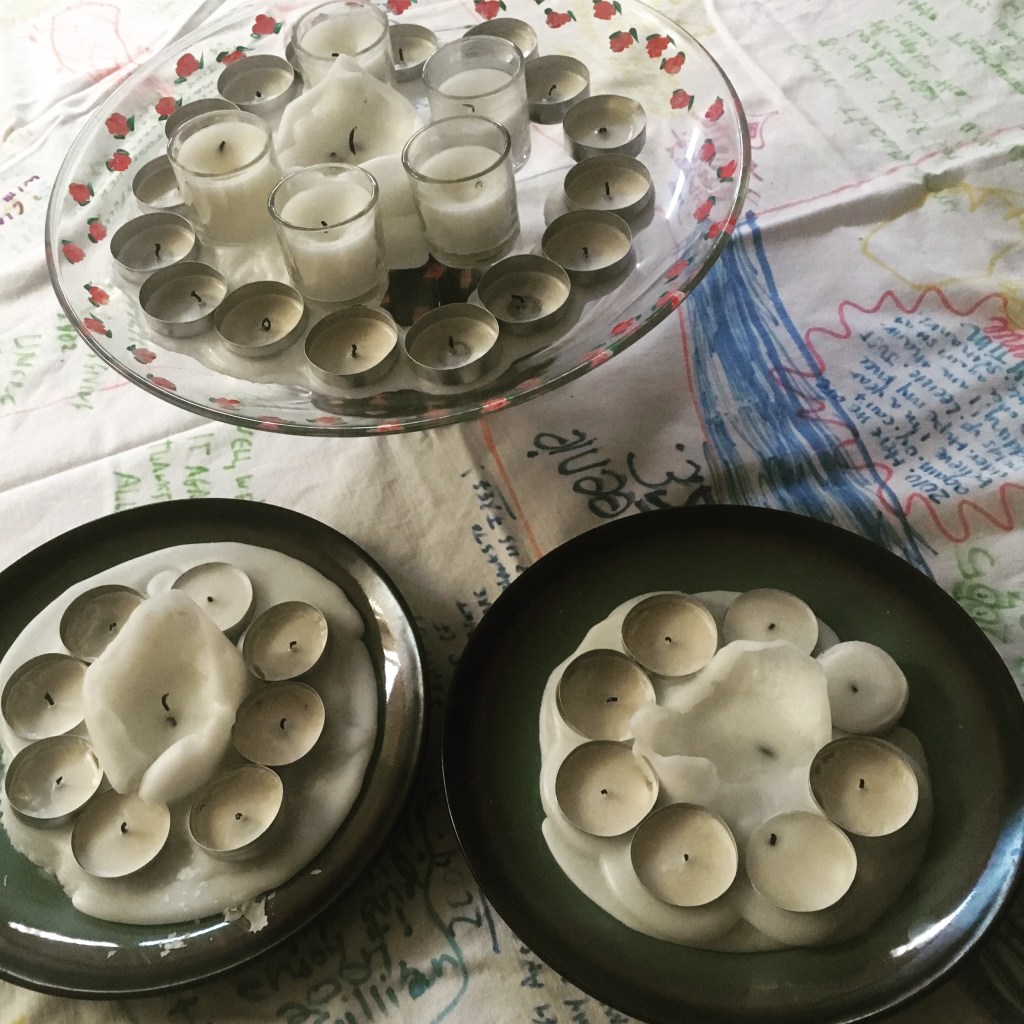 Happiness is . . . lingering and laughing deep into the night, long after the food was cleared, the candles burning so low they formed a sea of wax on the plates.