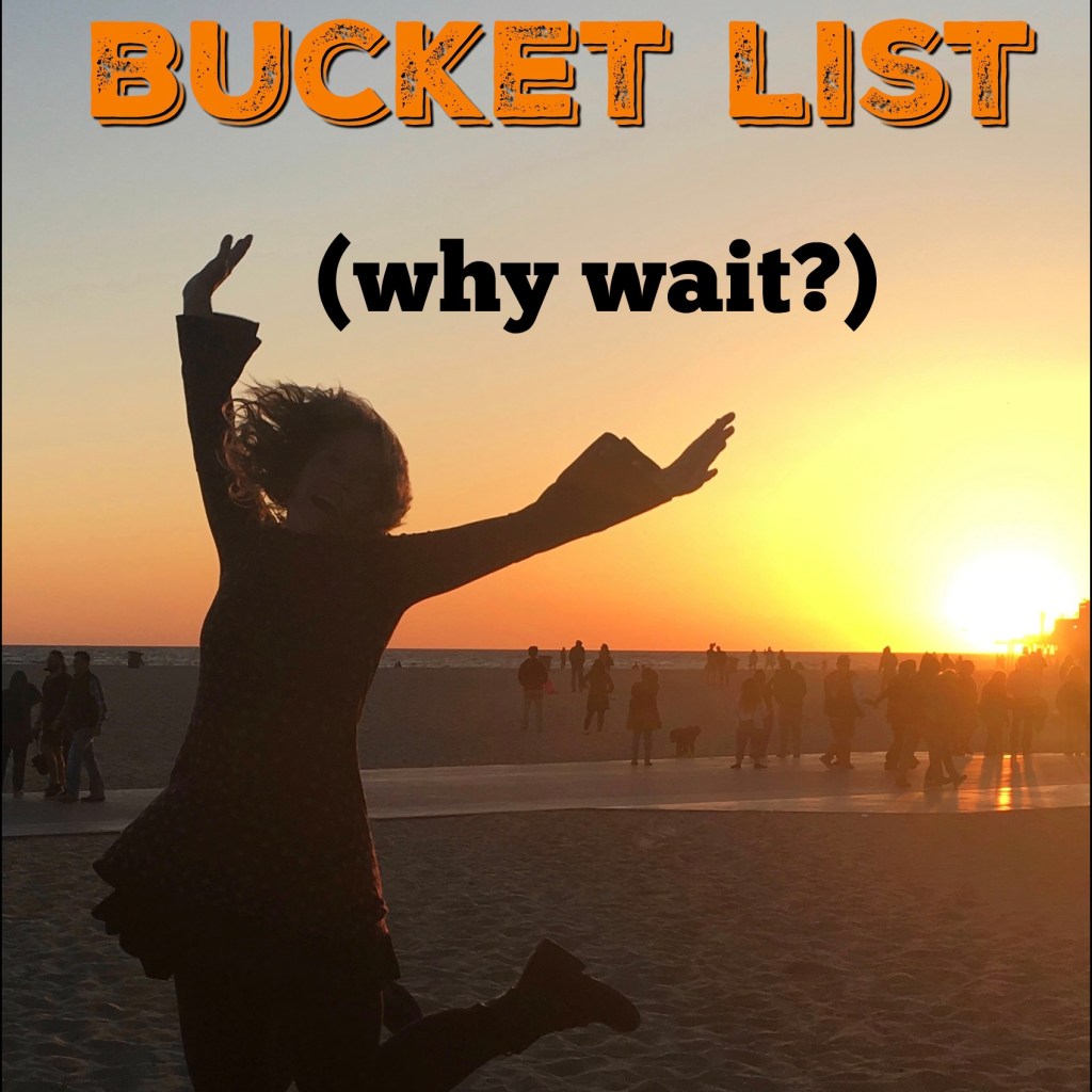 Bottom line? NO NEED TO WAIT to start living your bucket list, folks. Just start! There is most likely low-hanging-fruit on your list that doesn’t require much money, time or difficulty. Take the leap.