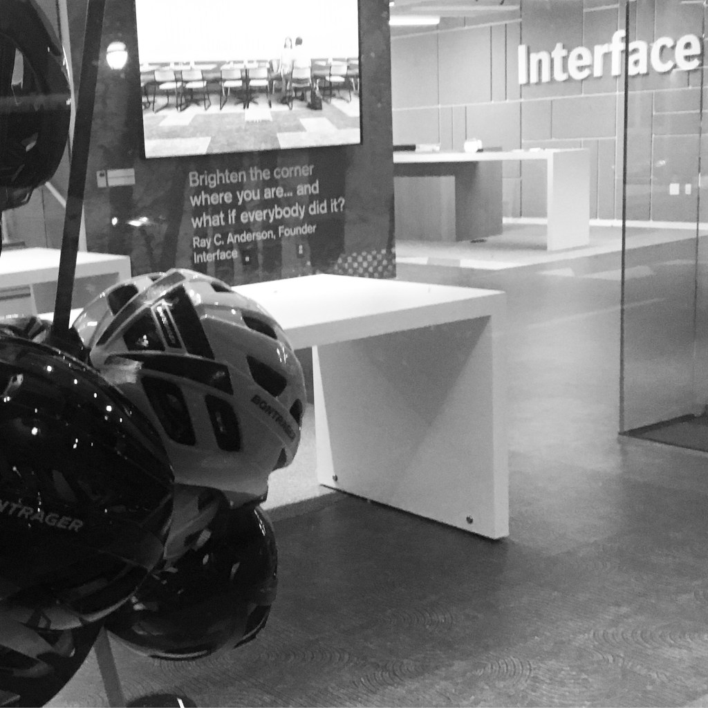 Just one block away stands the global headquarters of sustainability-leader Interface, the founder of which wrote a book about his come-to-Jesus realization about his ability to change the world for the better (and in the toxin-heavy carpet industry, no less) that further solidified the direction of my life more than a dozen years ago. I popped in the lobby in the pouring rain just moments ago to see if I could take a tour of the new “biophilic” building, perched on the edge of one of the most motor-vehicle-violent roads around, directly across the street from a MARTA transit station that (despite the crosswalks) requires taking your life in your hands to reach.