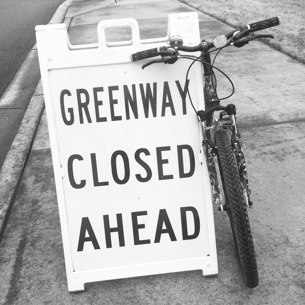 B9861BDB-189B-4C57-AE0A-2CFBBDF5CAA2The sign said “Greenway Closed Ahead” (as it is almost every time it rains and the creek overflows). But it wasn’t! I ended up able to ride 11 miles!