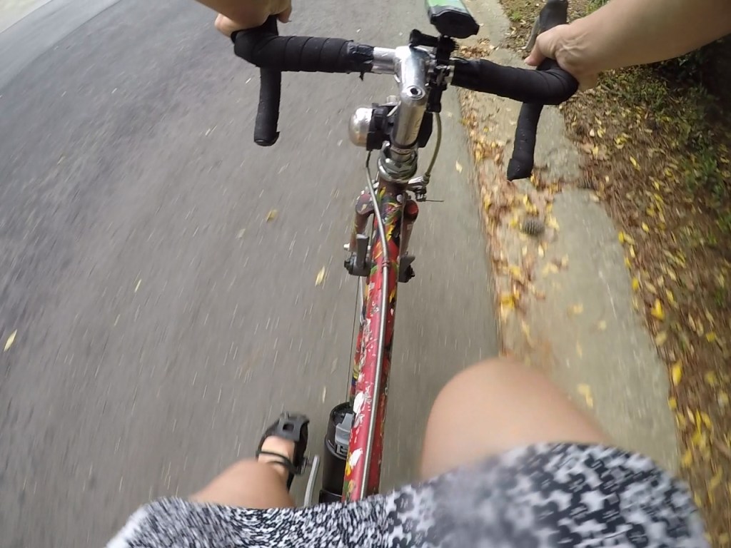 My body camera slips downward and I don’t realize until I get home that it captures my ascent up the steepest hill (of many) on my regular route Traveling at the Speed of Bike around my suburb-city, where I’m on week three of sheltering-in-place due to the COVID-19 pandemic.