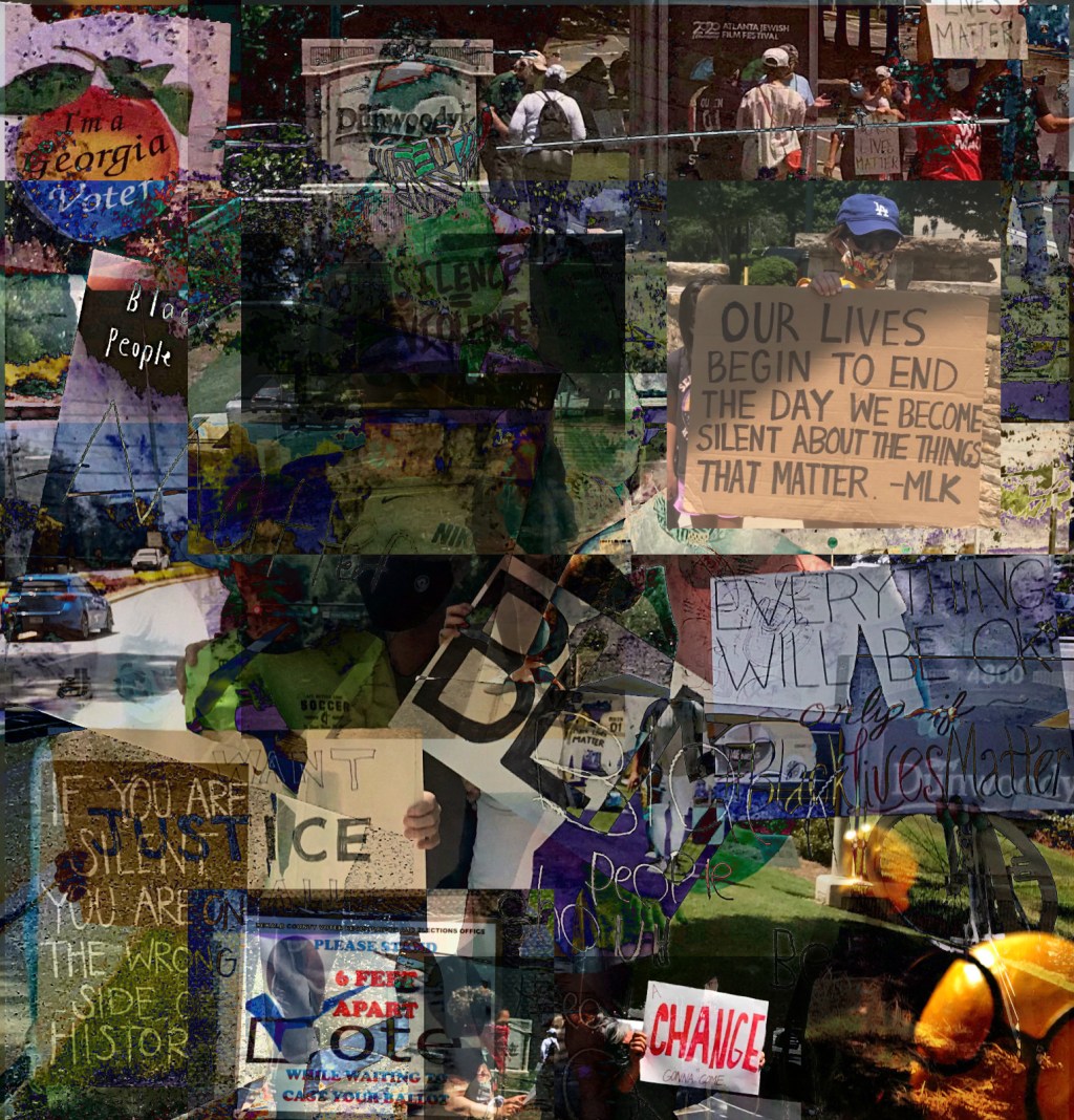 All photos in this collage above were taken the last two days in the metro-Atlanta suburb where I live as the call for change that respects basic civil and human rights sweeps the nation.