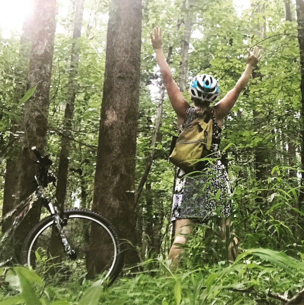 Yesterday after visiting my mother (outdoors, distanced, as usual these past five months during this global pandemic), I stopped at a greenway with my bike, rode into the forest, and bathed.
