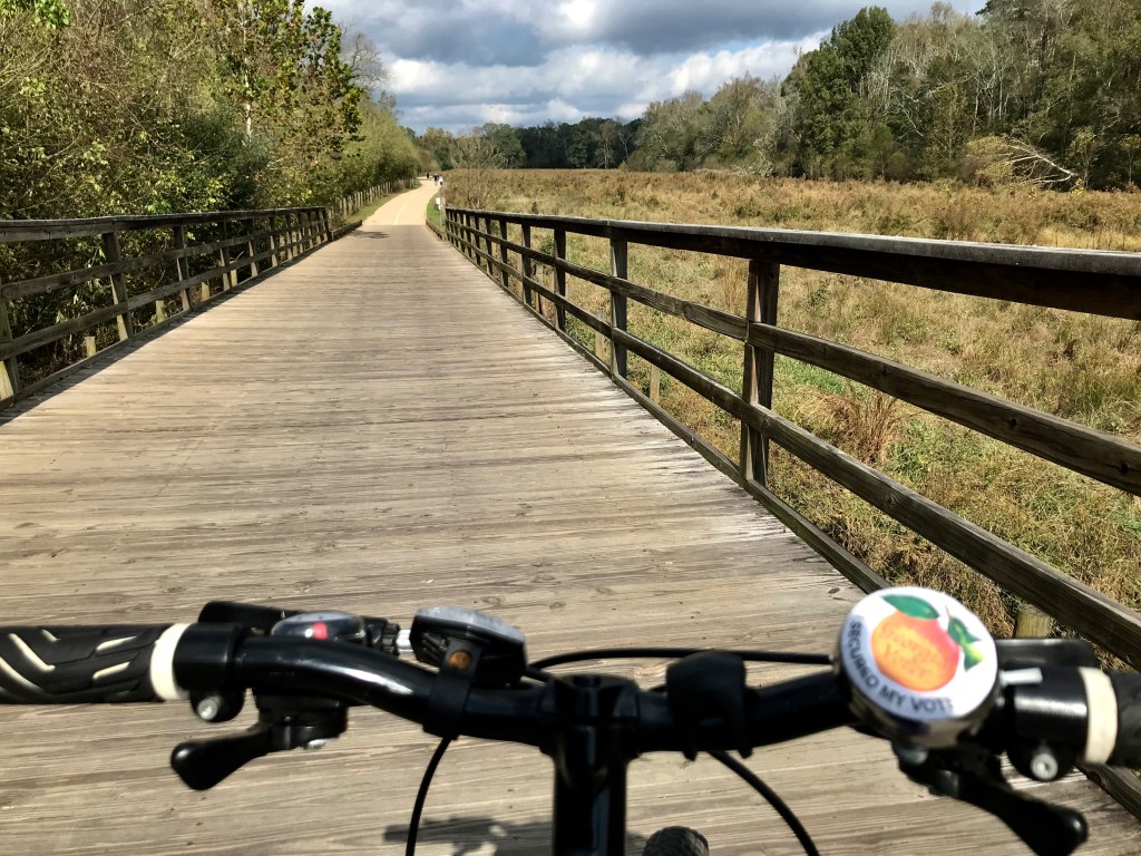 On the corner of Atlanta Highway and Carolene Way in Forsyth County, Georgia, people of all ages and abilities are expected to cross a busy intersection to stay on the Big Creek Greenway. The path appears from the woods on one side of the road and disappears on the other via a boardwalk on the edge of a stunning golden wetland dotted with bluebird boxes. There’s a memorial to two men who were killed here when their garbage truck collided with a dump truck in the middle of the afternoon on a Monday three years ago, and it’s a grim reminder that life is precious and fleeting and it can end suddenly no matter what form of transportation you’re using. May Rodrick Thompson and Ta’shaun Thompson rest in peace.