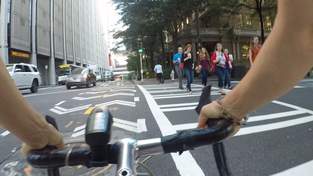 - You live in a city where riding a bike on the sidewalk is actually legal (hello, Dunwoody). You wish that the crossing lights not only would coincide with the flow of traffic, but would actually give you a few seconds head-start so that you could avoid deadly right turns and left hooks from motor vehicle drivers as well as distracted drivers who text during stops at lights and don’t notice you are about to cross (as recently happened to a 12-year-old girl who was hit in that Metro Atlanta suburb-city).