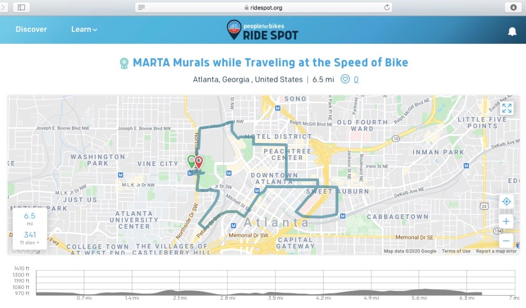 I finally finished the narrative for the first of two MARTA Mural tours I’ve created as a People for Bikes Ambassador. You can see it here. Here’s the route: