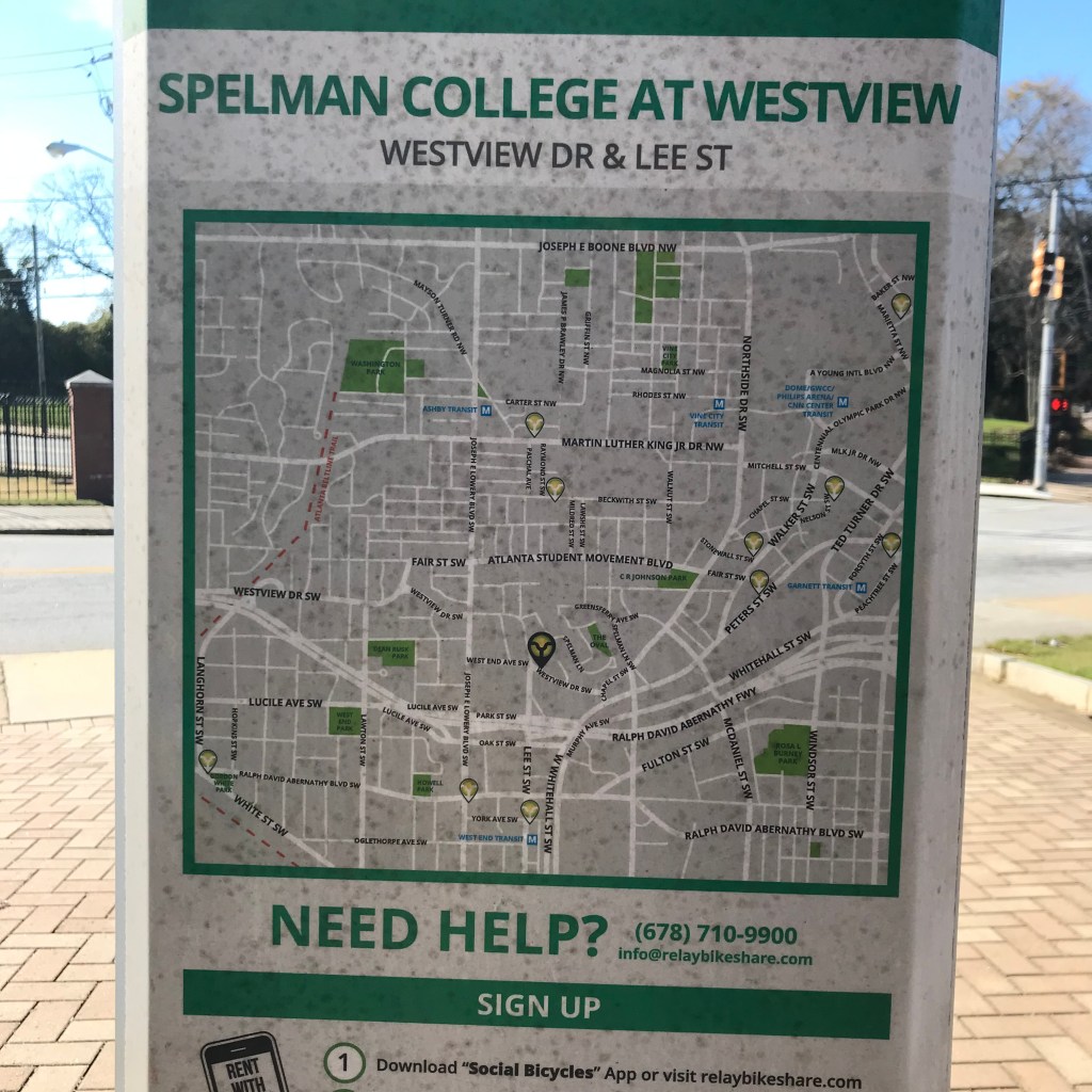 There’s a Relay Bikeshare station on the corner of Westview in front of Spelman College, but fair warning: this route is hilly and Relay isn’t always up to the task. Additional note: please walk your bike on the sidewalk when you are on Joseph E. Lowery Blvd. The rest (beyond the MLK Jr. Blvd cycletrack) should be fine for street riding. I kept this tour under four miles, but it covers a lot of ground. If you need a brush-up on street skills, see my free downloadable Pedal Power with Pattie class here.