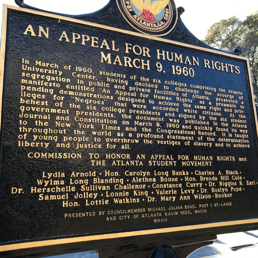 Historical markers punctuate the space, and in my new Ride Spot self-guided bike tour, Atlanta’s HBCUs while Traveling at the Speed of Bike, I take you directly past ones about the Atlanta Student Movement, the Student Nonviolent Coordinating Committee (SNCC, pronounced snick), and An Appeal for Human Rights.