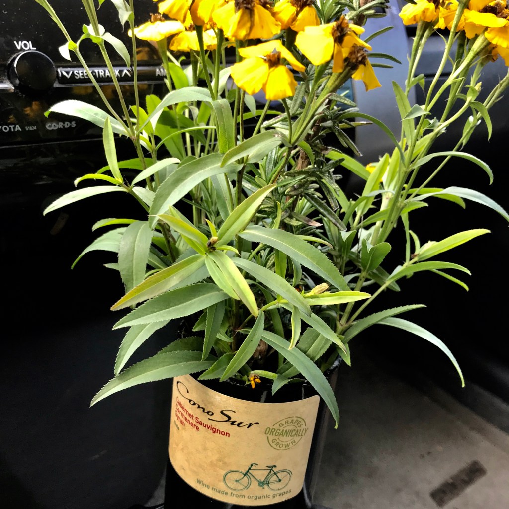 I snip the flowering tarragon, yet again, and tuck it into a wine bottle vase I had cut one day over the kitchen sink. I add rosemary, and the scents commingle, the licorice of black jelly beans and the heady evergreen of memory.