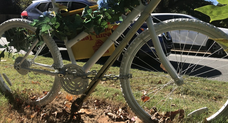 Nothing has changed at the spot where a ghost bike memorializes a man from my Metro Atlanta suburb city who was killed while traveling at the speed of bike in my neighboring city of Sandy Springs, Georgia eight months ago.