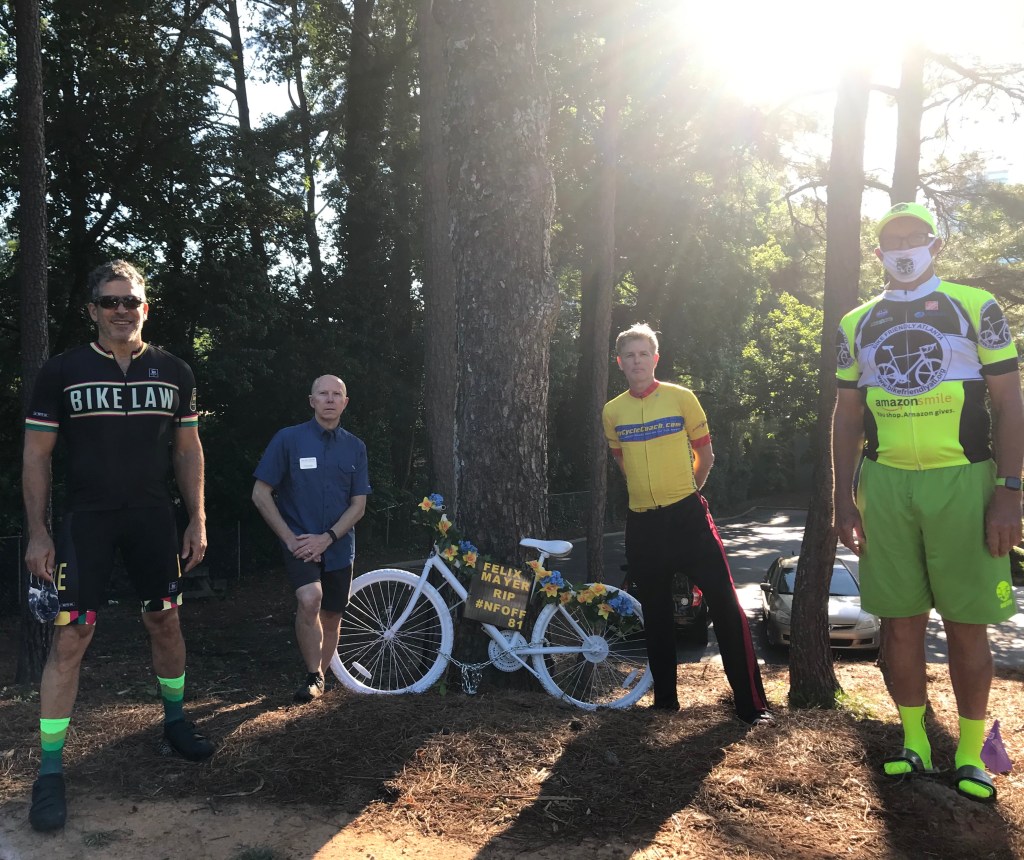 His widow asked City of Dunwoody City Councilor Joe Seconder (you’ve met Councilor Seconder here previously) to encourage other people who ride bikes to attend. As Metro Atlanta Bicycle Mayor, a League of American Bicyclists Cycling Instructor, a People for Bikes ambassador, a mom and a wife like Gao, a citizen, a participant at the dedication of the ghost bike at the spot where this crash occurred (pictured below), and a survivor of road violence while traveling at the speed of bike, I chose to attend.
