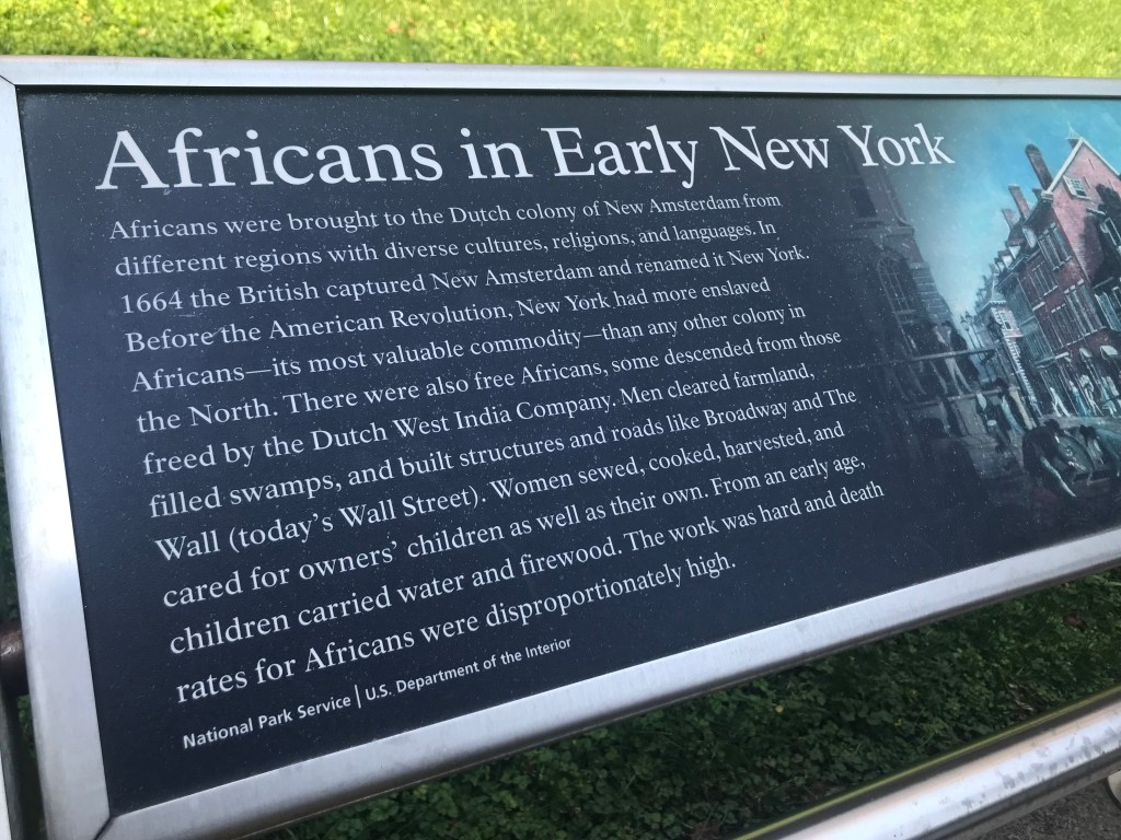 I was back home in New York City last week and fell upon the African American Burial Ground National Monument while Traveling at the Speed of Bike on Citibike. I’ll just leave this photo here of one of several historical markers by the monument as a reminder that there is no high moral ground on this issue in U.S. history. No region was “better.”