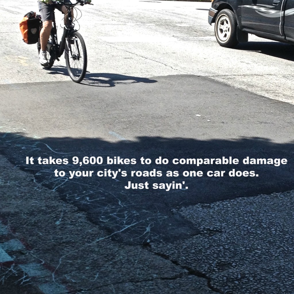 You know that it takes 9,600 bikes to do comparable damage to our aging infrastructure as one car, right?