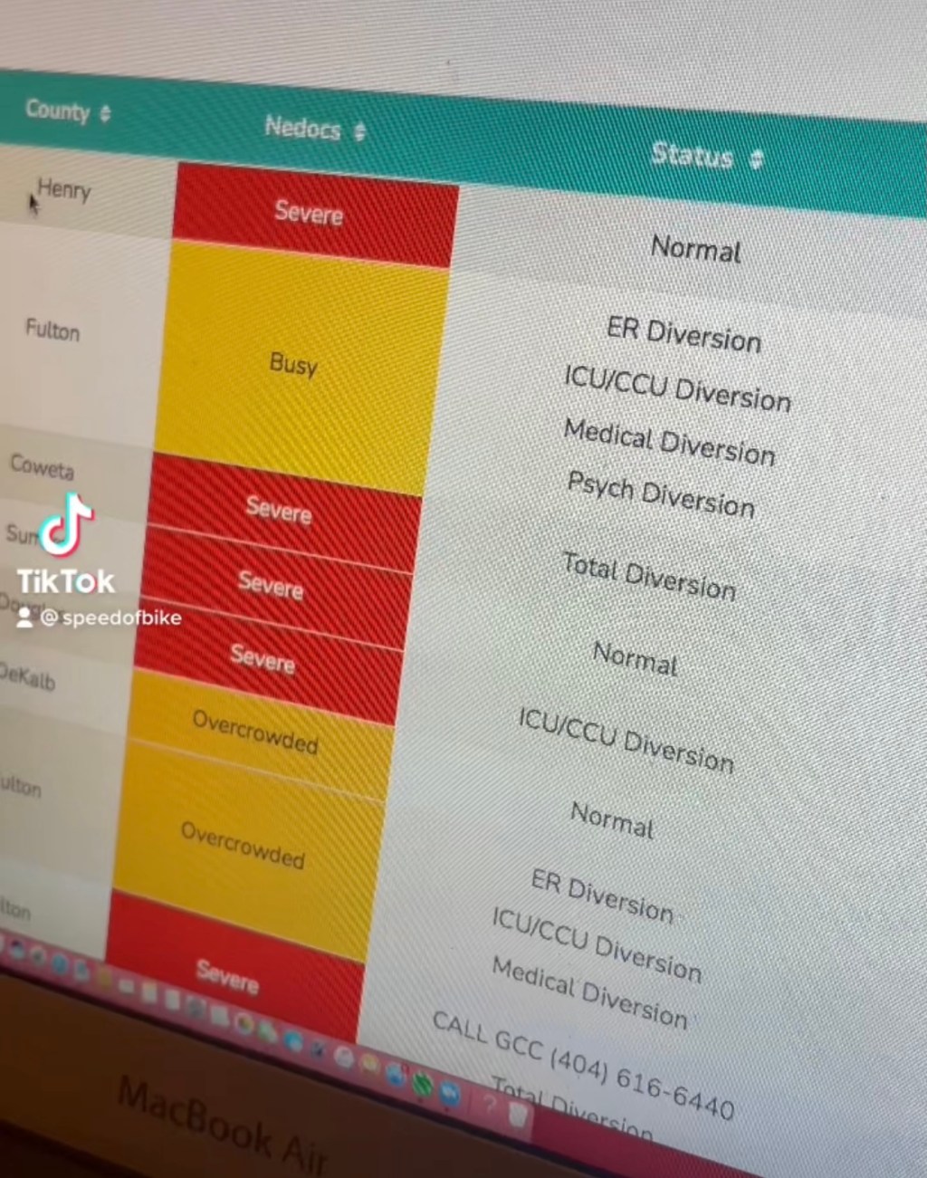 Following my mayor’s shared daily habit months ago, I check the Georgia Coordinating Center website every morning to see how full my area hospitals are, and I decide where to travel to do my work as the first Metro Atlanta Bicycle Mayor and the publisher of this blog, with regards to emergency room availability in case I experience another road violence assault (here are 11 tips following an assault while riding a bike, if helpful to you).