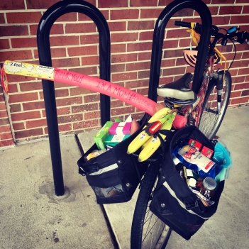 One hundred twenty one dollars worth of groceries. That’s how much fit in my bike panniers on this one visit to this grocery store. Add to that the almost-daily bike rides to this same store to pick up just an item or two at a time. In two weeks, I’d guess I alone cover the cost of that bike rack.