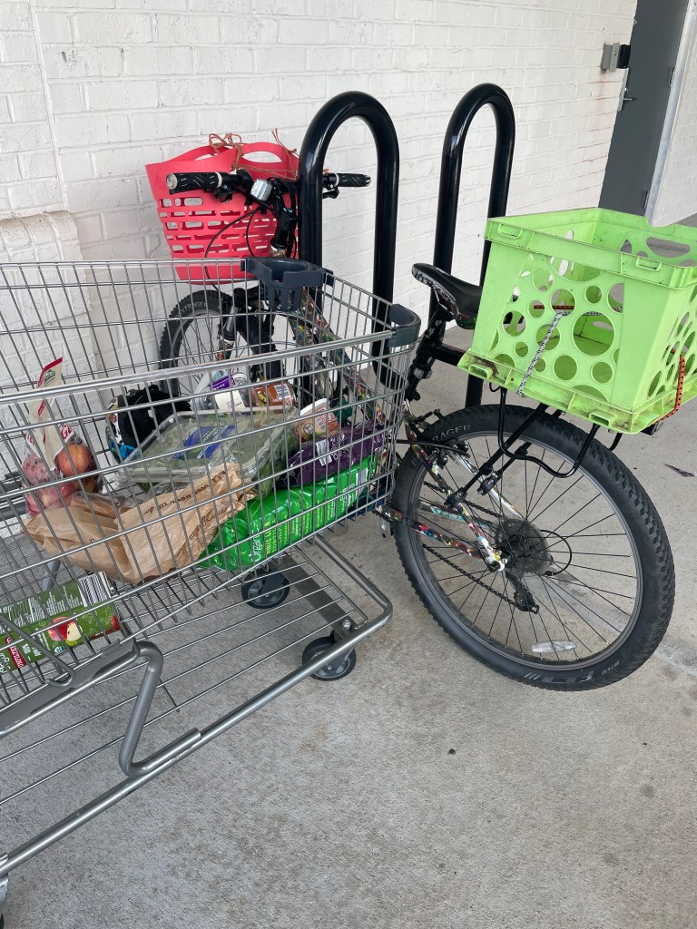 Speaking of Lidl’s, I was able to easily transport a load of groceries in my milk crate and Plasket yesterday (as usual). I am now in the habit of playing 70s folk music on my phone in my cross-body bag while zipping past bumper-to-bumper traffic (mostly on the sidewalk, which is legal where I live due to known dangerous-by-design conditions). Go Your Own Way, Carry On, Wild World, Turn Turn Turn, Teach Your Children Well, and of course Landslide are all on that Spotify playlist. It’s nice. It makes me feel like a kid again*.