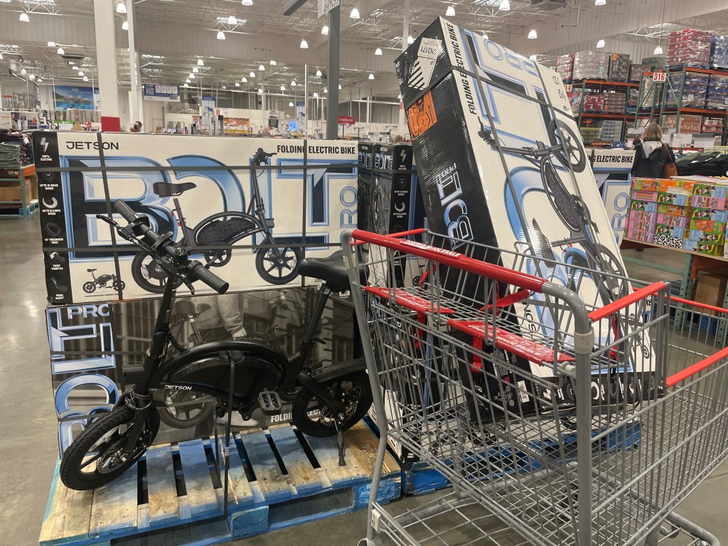 This is Joy. She’s the most affordable electric bike on the market, for just $350 at Costco. Her handlebars fold, and her body has a built-in handle for carrying (although at 41 pounds, she’s heavy). I had been wanting her; I had saved up a little gift money; and the timing seemed right.
