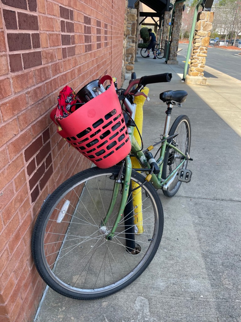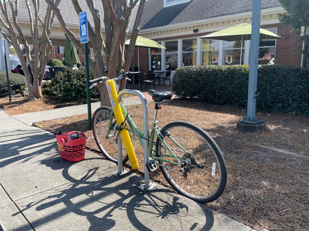 Note that 2 of the 3 bike racks are too close to brick walls 🤷♀️. (Here’s a User’s Guide to riding a bike in the Metro Atlanta city of Dunwoody, if interested, with some info that’s helpful everywhere. I’ll add my bike rack spreadseet with user-experience reviews shortly.)