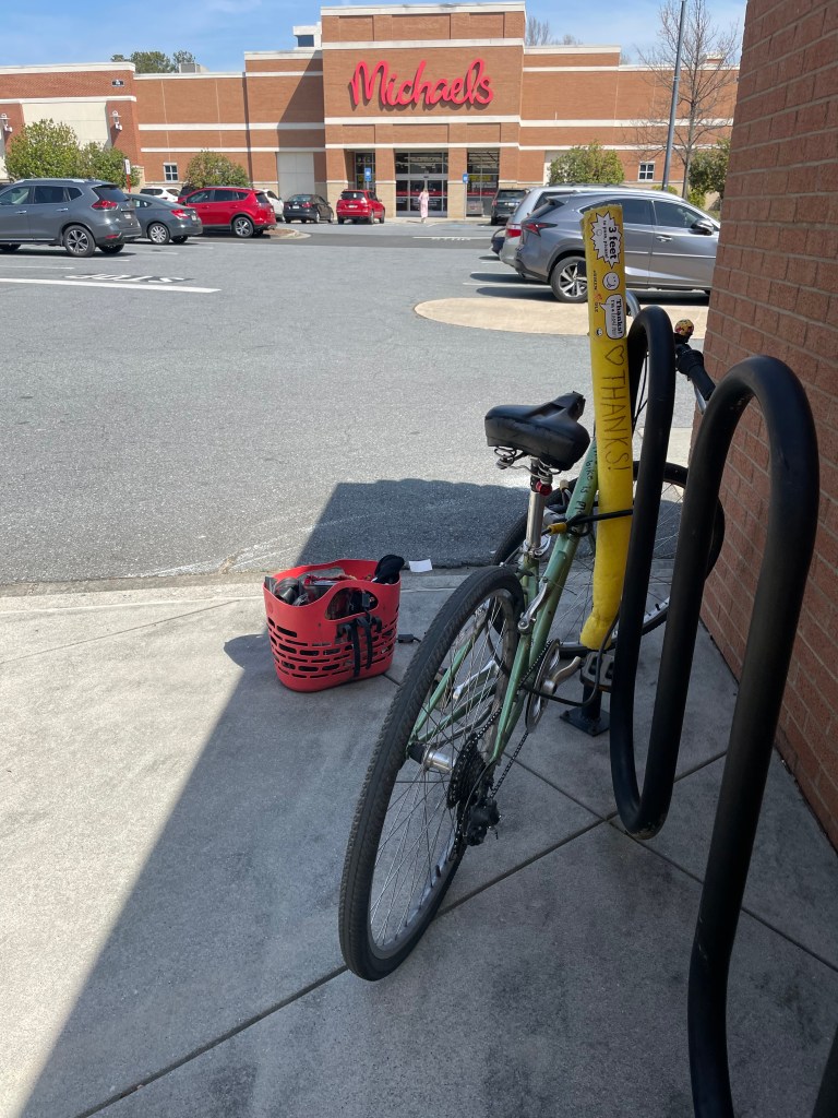 And then off to Michael’s for some more earring fish hooks and jump rings! (That’s fun earring-making jargon!) I then stopped at Panera for their delicious veggie sandwich on the way home, thereby hitting a total of 3 of the less-than-2-dozen bike racks in my city’s 12 square miles! (#BikesMeanBusiness, even more so when ridden by women, but not everyone has gotten the memo, and the city does not require bike parking.)