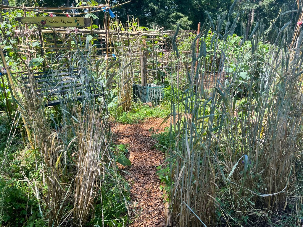 The wheat is just about ready to save as seeds to plant in the fall, as are the peas. Peas on earth, as if that will make a difference (and yet somehow does). The Swiss chard is enormous and showing no signs of quitting, although that is surely soon. Squash plants are spreading, and the cucumbers and green beans are starting their climbs up the bamboo structure my friend and I built. The jalapeño plants are filling out, stretching tall. I planted them because the man from Afghanistan to whom I was going to give this garden said he likes peppers. And mint. He likes mint, and there is lots of it. But I haven’t seen him since.