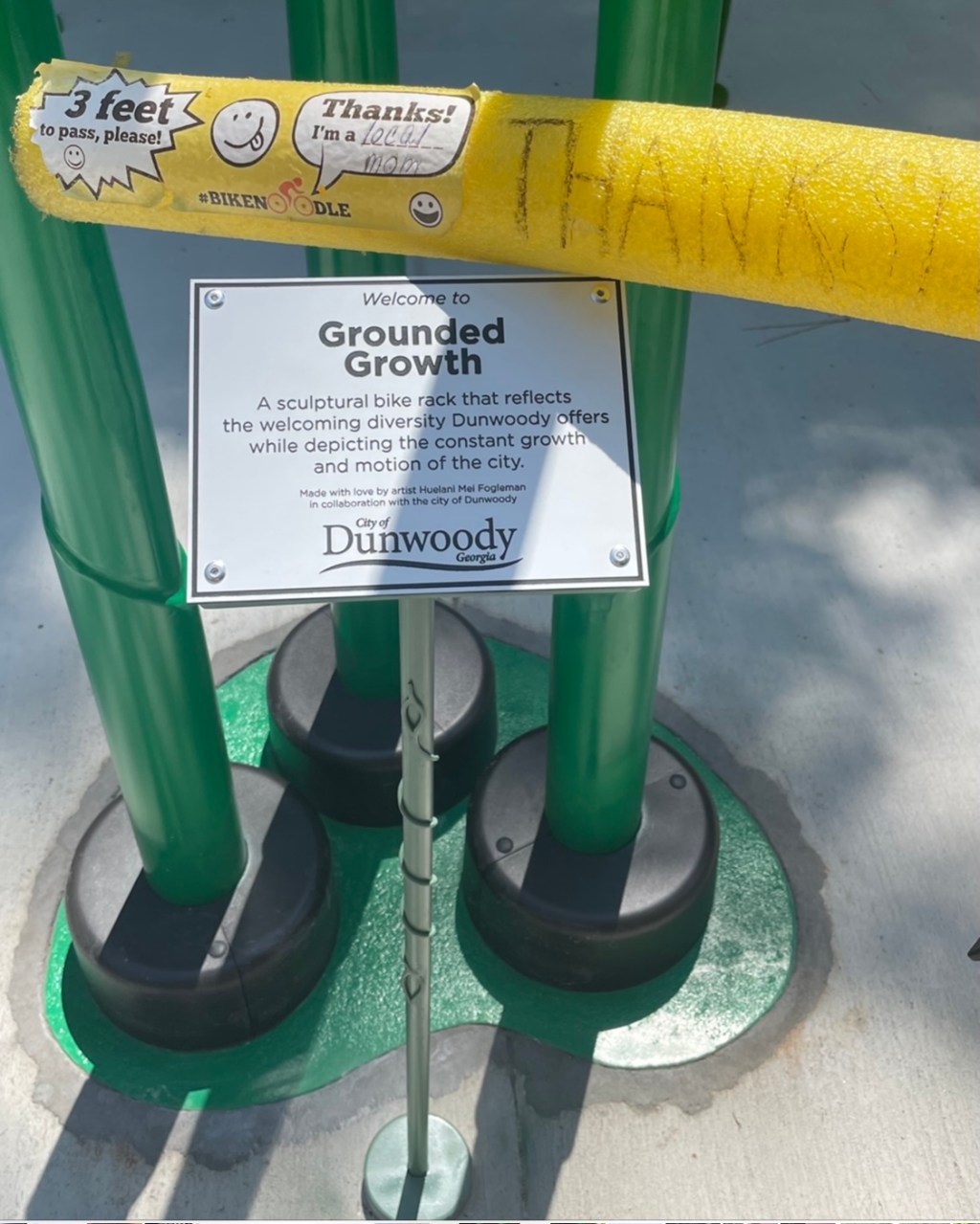 I enjoyed the large turn-out at the dedication of the gorgeous new bike racks** this past Thursday in Brook Run Park. I was not surprised that Jason Metzger and I were the only two people to ride bikes there. I have never seen anyone from city hall riding a bike with a loved one in a bike lane in the City of Dunwoody except for Councilor Seconder and his wife Kathleen, with whom I rode years ago when Georgetown Park was dedicated — I believe she has refused to do so ever since due to the dangers. All “bike lanes” leading to the park do not meet standards for access-for-all and are thus dangerous-by-design and should be considered temporary.