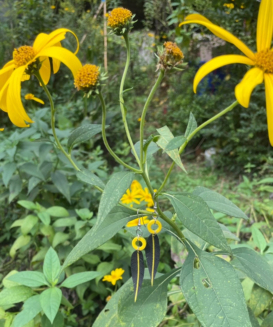 I wear my BikeBloom upcycled bike tube earrings daily. Many days lately, I’m choosing these yellow ones. They somehow help.