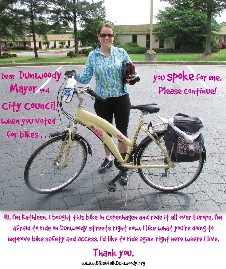 Lynn and John: Missed you! Would still love to teach you to ride a bike, Lynn. I teach many women and girls (who are underrepresented in public space) to ride bikes for the first time in their lives. I have held classes all over Metro Atlanta but will only teach them in Dunwoody in the parks because the roads in Dunwoody don’t meet standards for safe-access-for-all. Meet Kaysha and other students of mine here. That short post includes a message for city leaders everywhere. Please take the moment! Lives depend on what all of you choose to do next to create true safe-access-for-all.