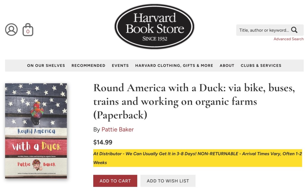 Yep! It’s true! My little duck traveling companion, Disco, can now be seen on the Harvard Book Store website! Click here to order from the Harvard Book Store. Click here to order from your choice of many other indie bookstores across the USA. Click here to order from Amazon globally!