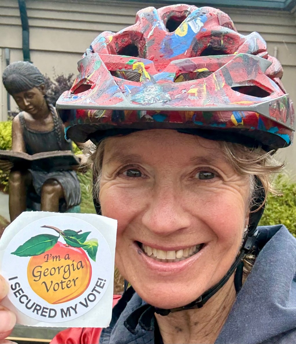 ”You’re brave!” one after another of the people working at the polls told me today. It was a familiar refrain that I had heard all day today, yesterday, and the day before (all rainy days) as I rode my bike around my city, as usual, as my transportation. To the eye doctor. The post office. Costco. The food pantry to plant garlic in the garden. A community center for yoga. A coffee shop for a meeting. A local restaurant for lunch with my husband. And now the library to vote for city councilor. Over and over again, “you’re brave!”