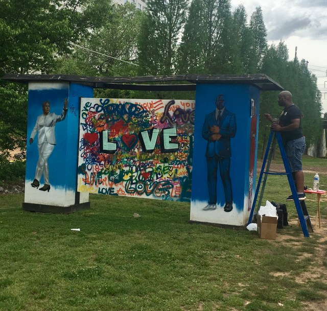 Happiness its . . . when you come upon local artist Fabian Williams, aka Occasional Superstar, adding yet another painting (this time of City of Atlanta Mayor Keisha Lance Bottoms) to his mural of superstars.