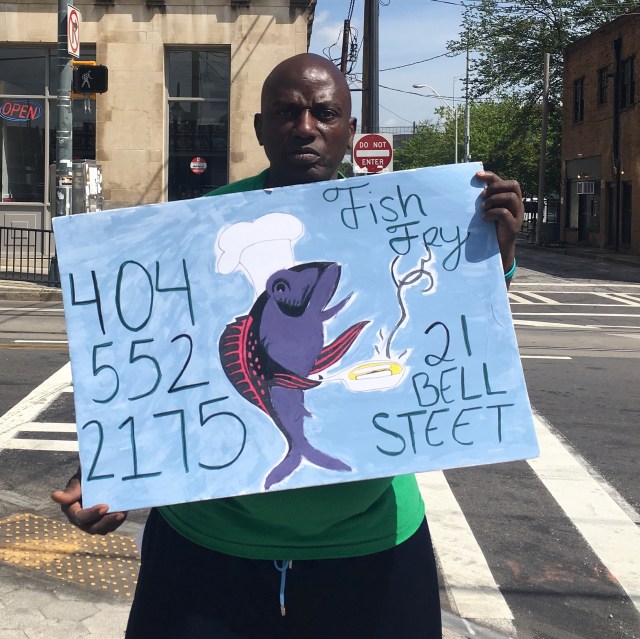 This is Solomon. He is Today’s Nice Stranger. He can sell a fish fry like nobody’s business. I met him today while Traveling at the Speed of Bike.
