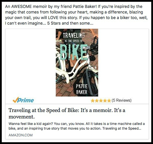 Big thanks to the friend of mine who shared her reaction to my book, Traveling at the Speed of Bike, on Facebook. This actually takes my breath away that people could be so generous.