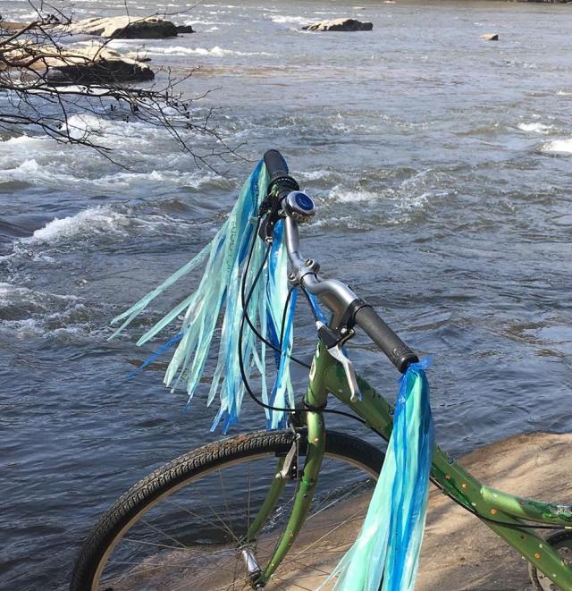Just sitting with Magic on a rock by the Chattahoochee River, reading my book.
