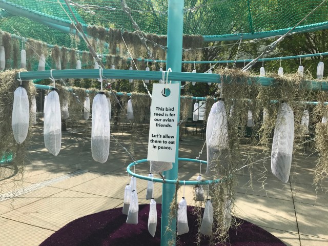 In separate news, there’s a giant bird feeder in the “piazza” at the High Museum of Art in Midtown Atlanta, and I have a LOT of questions . . .