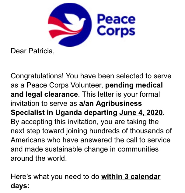 I am a Peace Corps Invitee, originally scheduled to depart for Peace Corps Uganda on June 4, 2020 (a week from tomorrow). Additionally, I am part of the roughly 4% of Peace Corps Volunteers who […]
